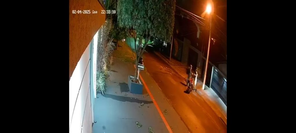 DOURADOS (MS) – Um assalto ocorrido na noite desta quarta-feira (3) em frente a uma creche no bairro Altos do Indaiá foi flagrado por câmeras de segurança e está sendo investigado pela polícia.