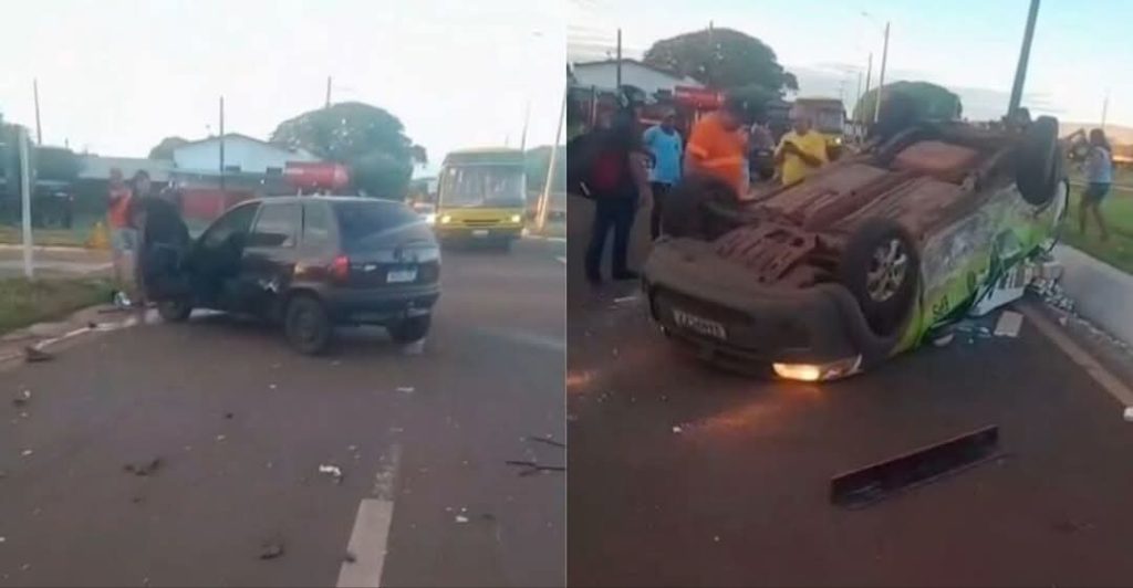 Dourados (MS) – Um acidente de trânsito de grande impacto foi registrado na manhã desta terça-feira (2) na rotatória da Planacon, na saída de Dourados para Itaporã. A colisão envolveu dois veículos, sendo que um deles capotou devido à força do impacto.