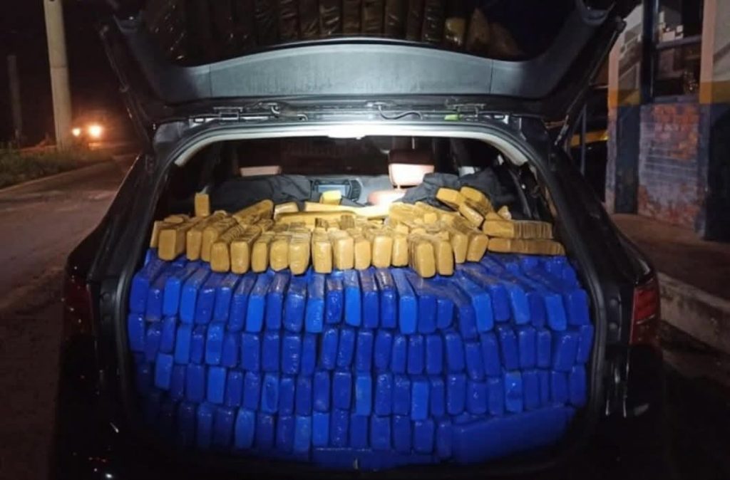 No veículo estava carregada grande quantidade de maconha e a equipe também descobriu que as placas utilizadas eram falsas. O utilitário possuía registro de roubo, desde fevereiro de 2025, em Sarandi (PR).